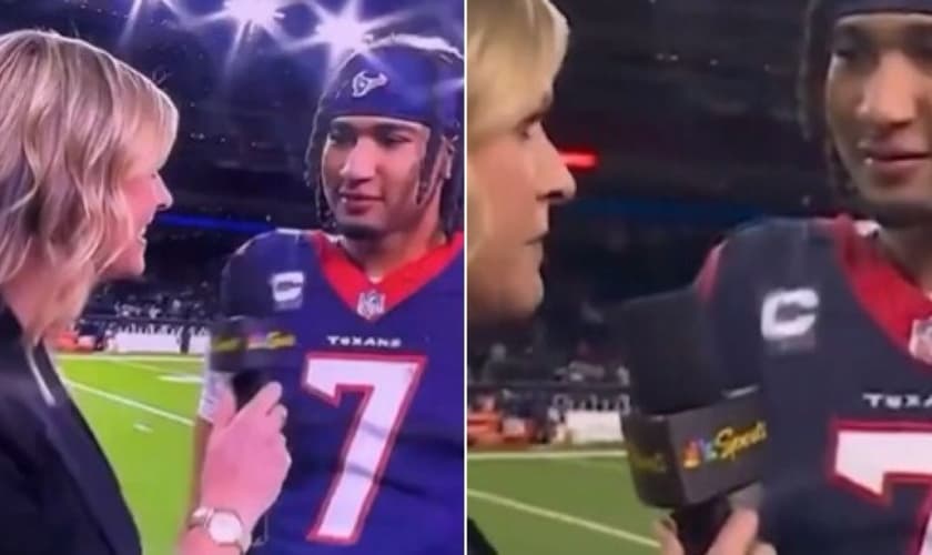 CJ Stroud agradeceu a Jesus em uma entrevista à NBC depois de receber a vitória do time.